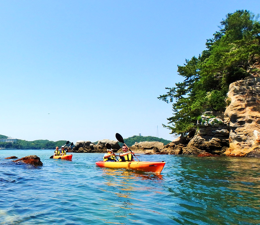 志摩半島の南側には、リアス海岸があり、山々で隔てられた深い入り江がたくさんあります。ここの静かで暖かい海は、カヤックなどの海のアクティビティに最適です。これは、伊勢志摩のゴージャスな自然を間近で体験するのに最適な方法です。南伊勢町の五ヶ所湾には、サニーコーストカヤックがあり、経験豊富なインストラクターが率いるさまざまなガイド付きカヤックツアーを提供しています。ツアーの多くは初心者に適しており、子供(小学生以上)から体験できます。