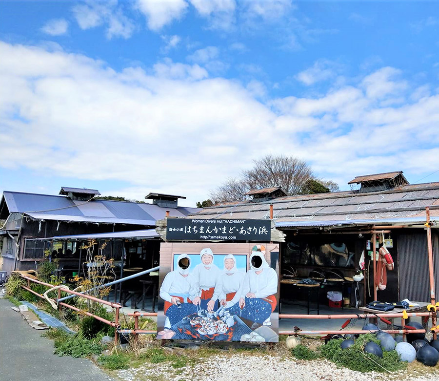 お客さんは、海女さんの話を聞きながら、海女小屋はちまんかまどで海女さんに参加し、貝、干物、海藻などの新鮮な地元のシーフードを楽しむことができます。また、海女が伝統舞踊を披露するのを見たり、磯木と呼ばれる白い海女の衣装を着て写真を撮ったりすることもできます。小屋の前のビーチは、夏は海水浴客に人気があり、秋は特に美しい夕日の景色を眺めることができます。