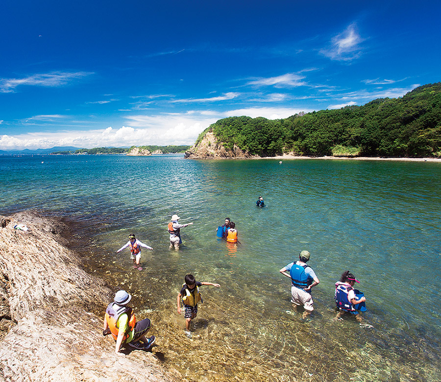 静寂な空間に身をおき、海面近くからの視界で自然を堪能することができるのがシーカヤックの魅力のひとつです。英虞湾の美しい海を覗き込むと、アマモやミルといった海藻や、ハナギンチャクやヒトデなどの様々な海洋生物をみることができます。シーカヤックだからこそ、すぐそばまで近づいて観察できるのです。野鳥の姿や鳴声、飛び跳ねる小魚、無人島の干潟、浦々の岸辺では、季節ごとの植物など、英虞湾の自然を思う存分観察できます。