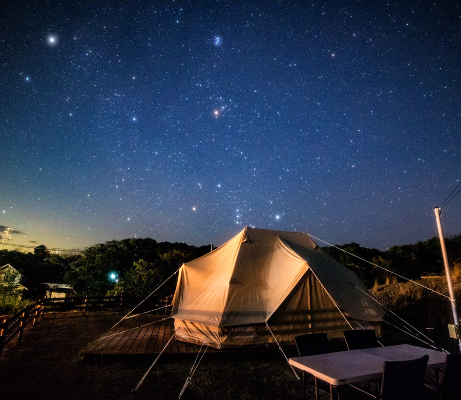 カブクは、魅力的なキャンプの略である「グランピング」リゾートのスタイルをとっています。グランピングで自然の中でのんびりとキャンプの快適さを満喫できます。広々とした設備の整ったテントに滞在し、敷地内のサウナやジャグジーでさらにリラックスできます。