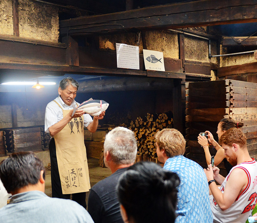 かつお節は、カツオの乾燥、発酵、燻製で、日本料理に欠かせない材料であり、うま味を詰めただし汁の基礎となっています。鰹節は伊勢志摩で何世紀にもわたって生産されており、一部の地元企業では今でも伝統的な燻製と乾燥の方法が使用されています。そのひとつが、来場者に開放されている築100年の燻製小屋(いぶしごや)を運営する天白です。ここでは、毎年恒例の神嘗祭のために伊勢神宮に贈られる鰹節の歴史と製造過程を学ぶことができます。このお祭りは10月に祝われ、神道の太陽神である天照大神に米などの食材を提供し、豊作と国の繁栄を祈願します。